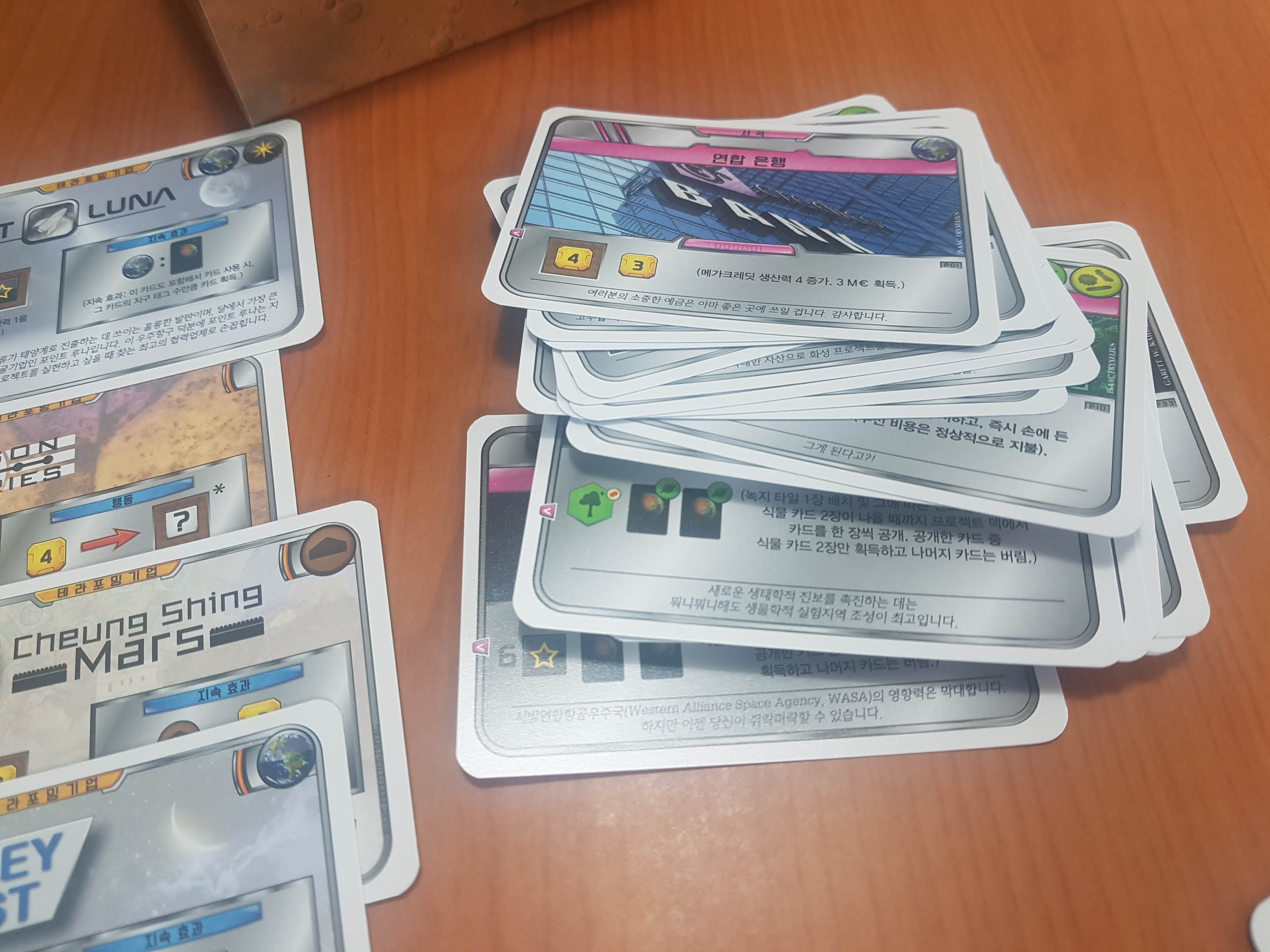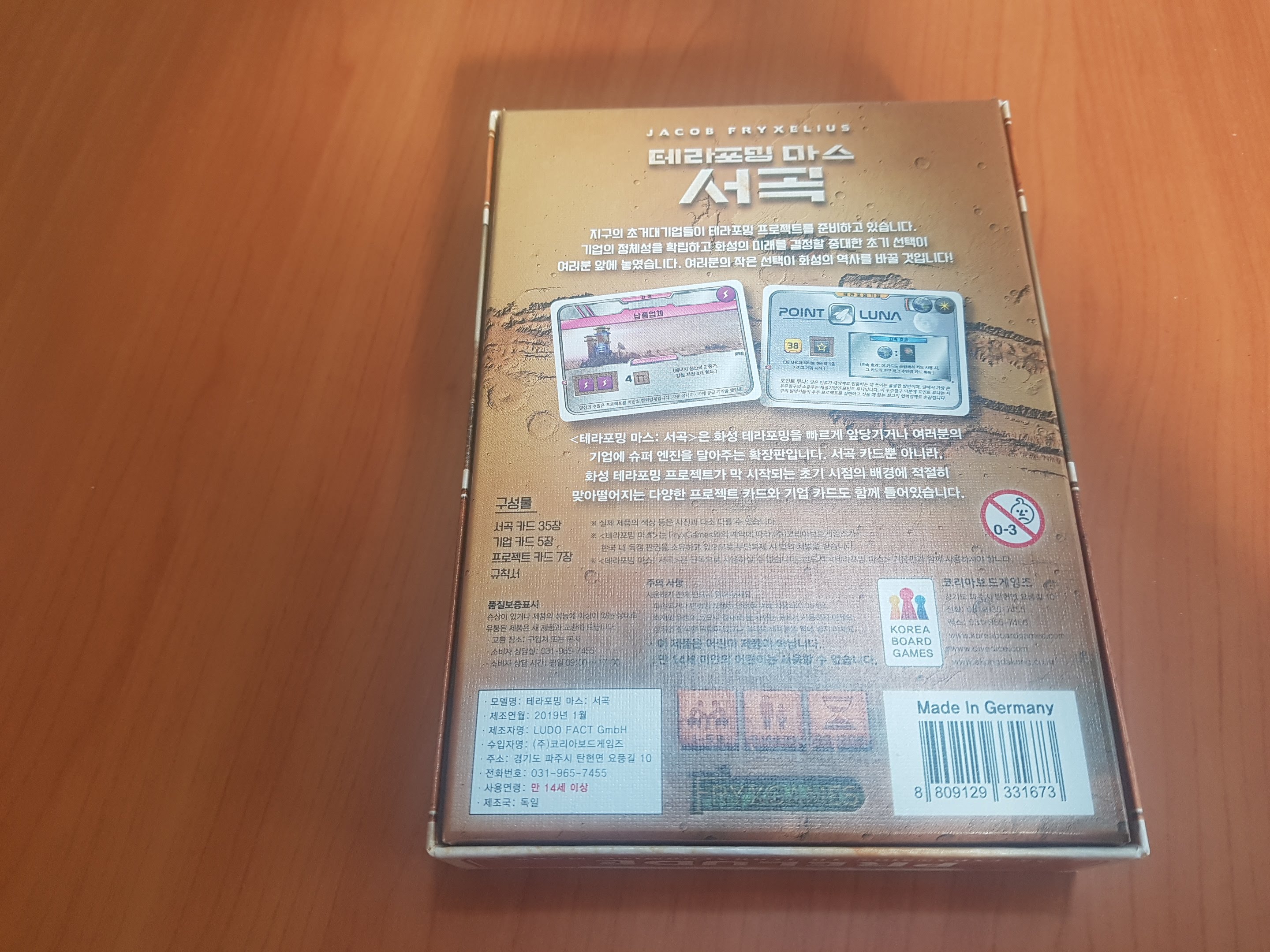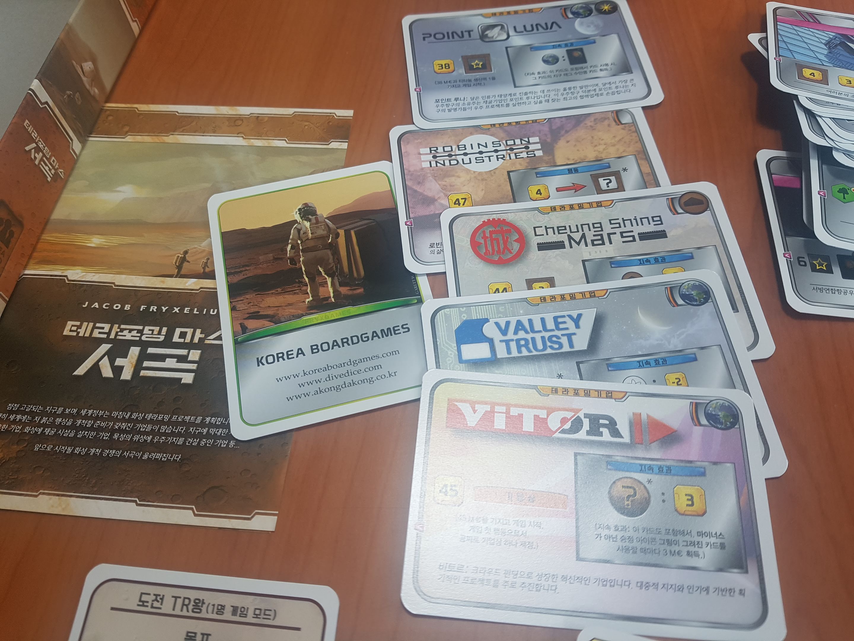 테라포밍마스 확장 서곡입니다. 게임 시작할 때 부스터 역할을 해서 게임 시간도 크게 줄여주고 빠른 게임 진행이 되게 하여 테포마 필수확장으로 불립니다.