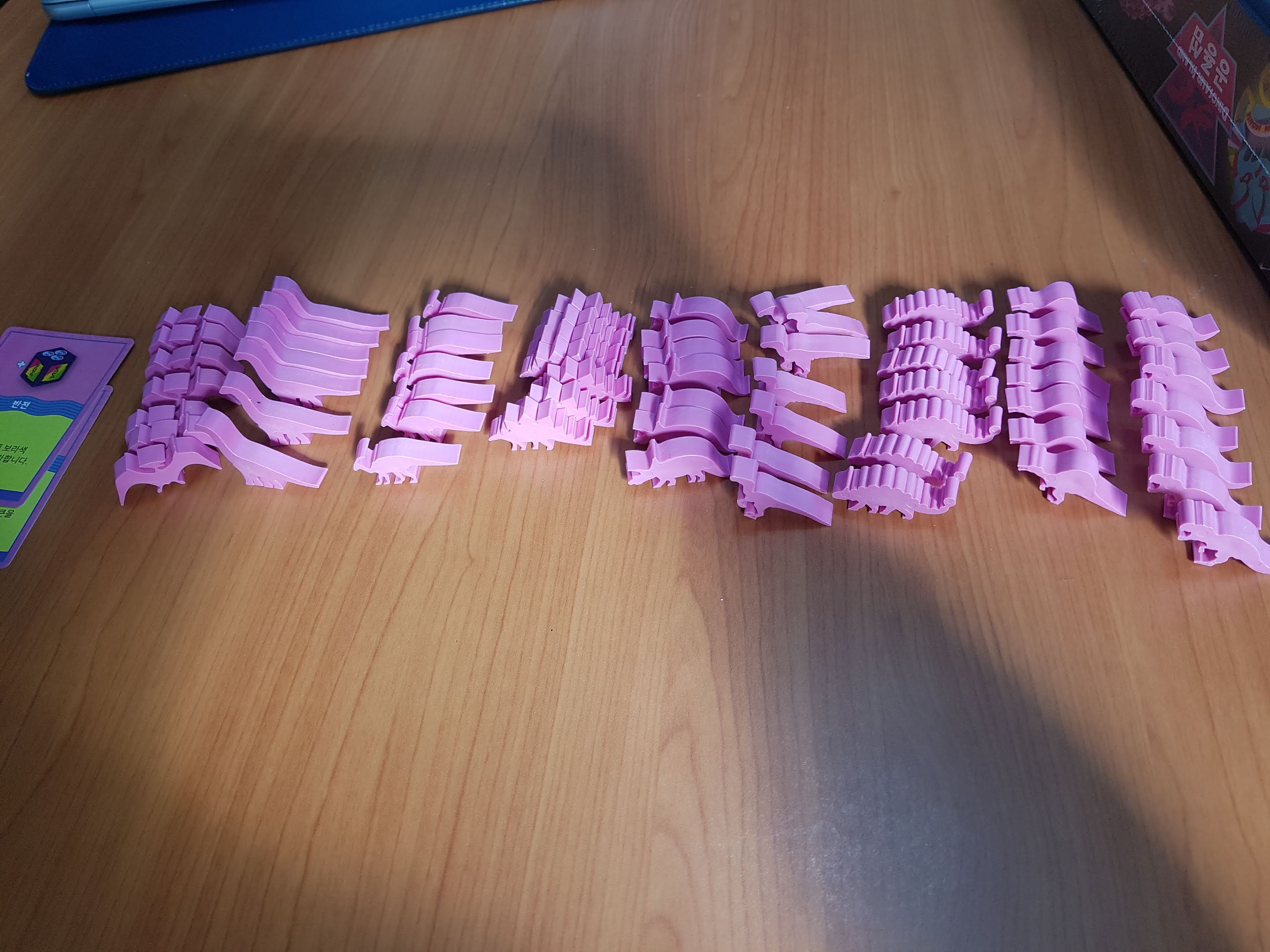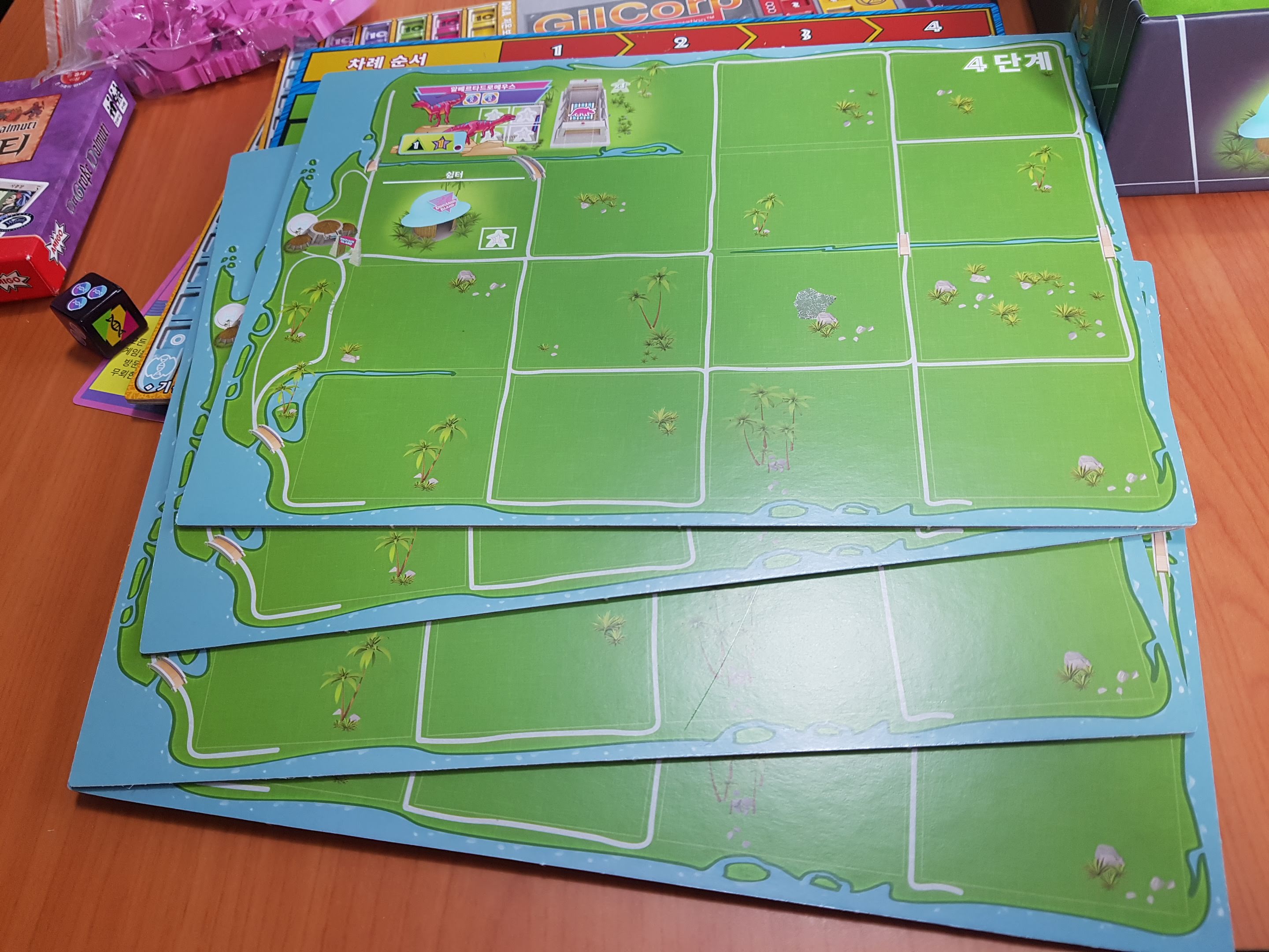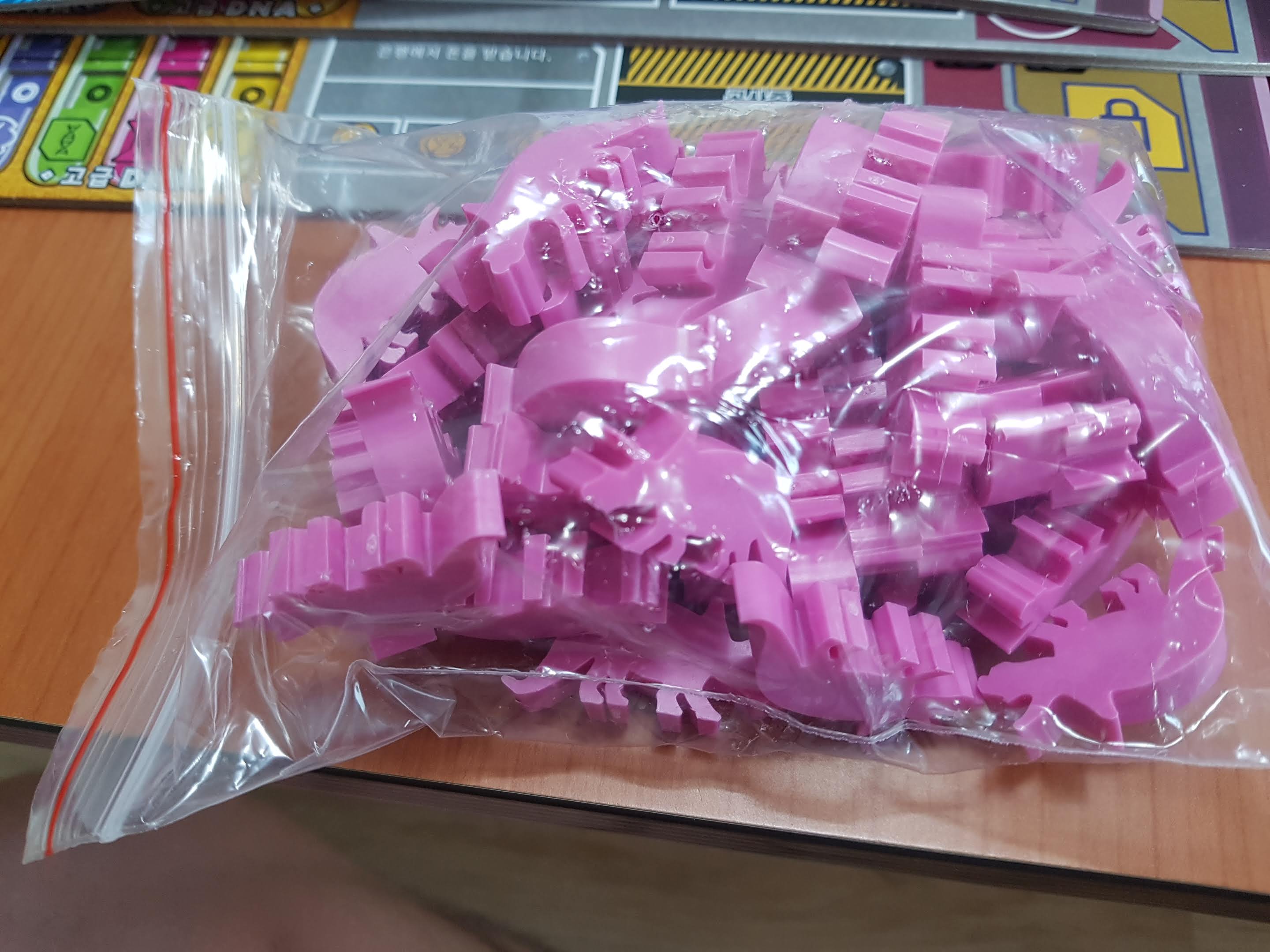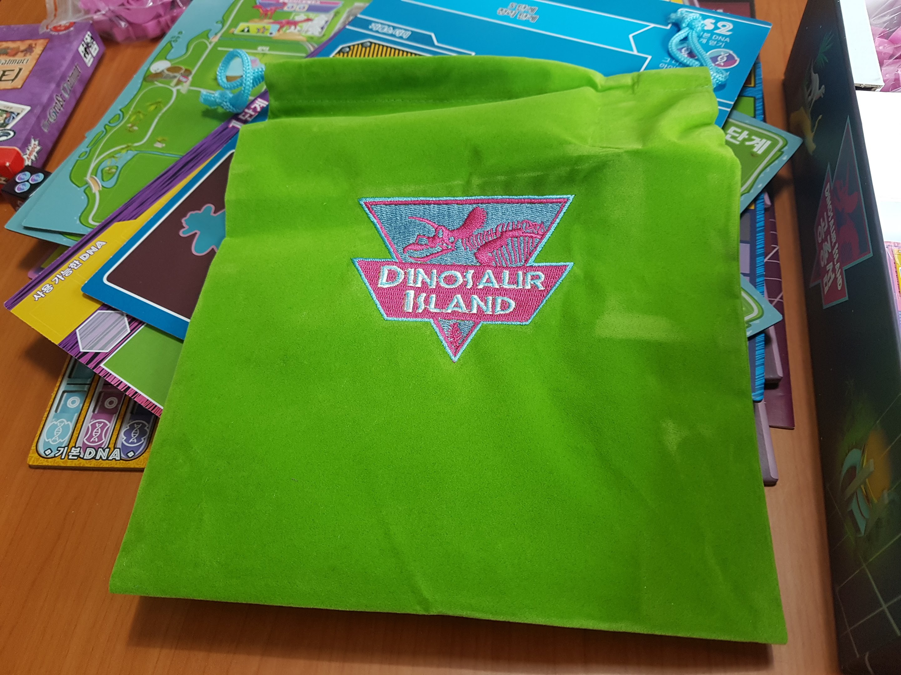 카드와 주사위 미플들이 보입니다. 기본공룡은 빼고 프로모 공룡을 넣었습니다. 둘다 넣으면 안들어갑니다.