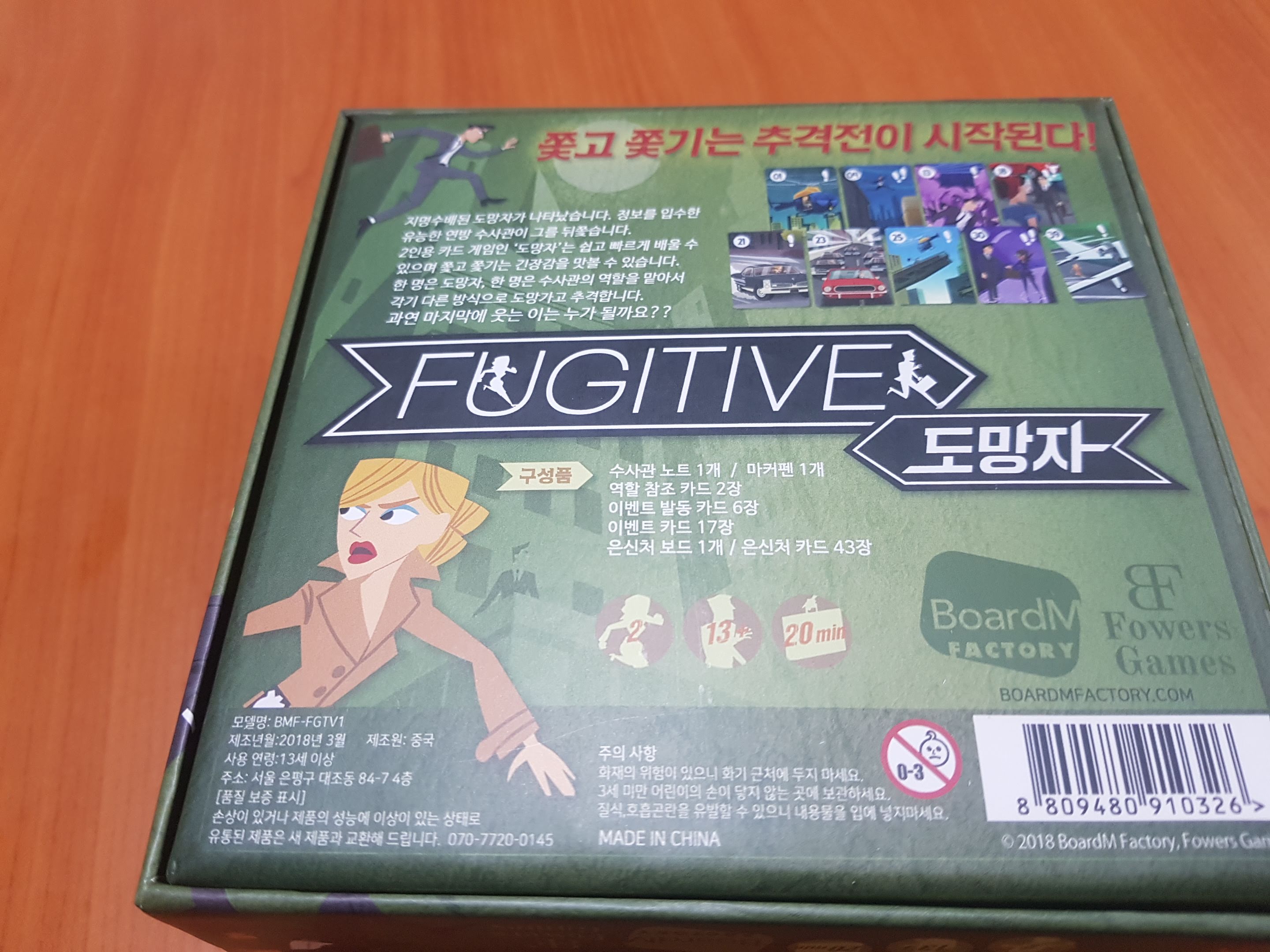 2인용 괜찮은 보드게임 중 하나인 도망자입니다.