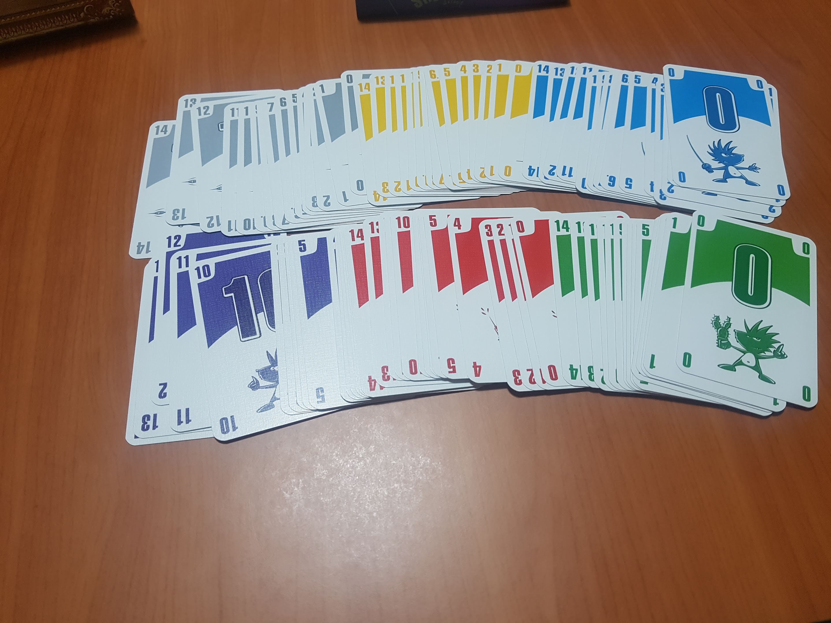 6개 색깔 카드가 0부터 14까지 있습니다.