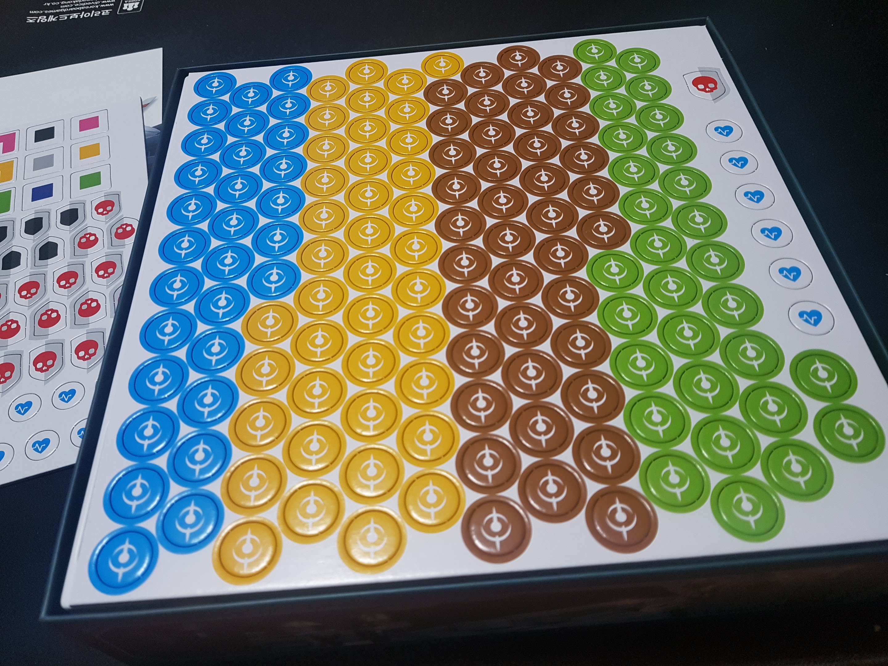 스티커와 펀칭할 타일이 보입니다.