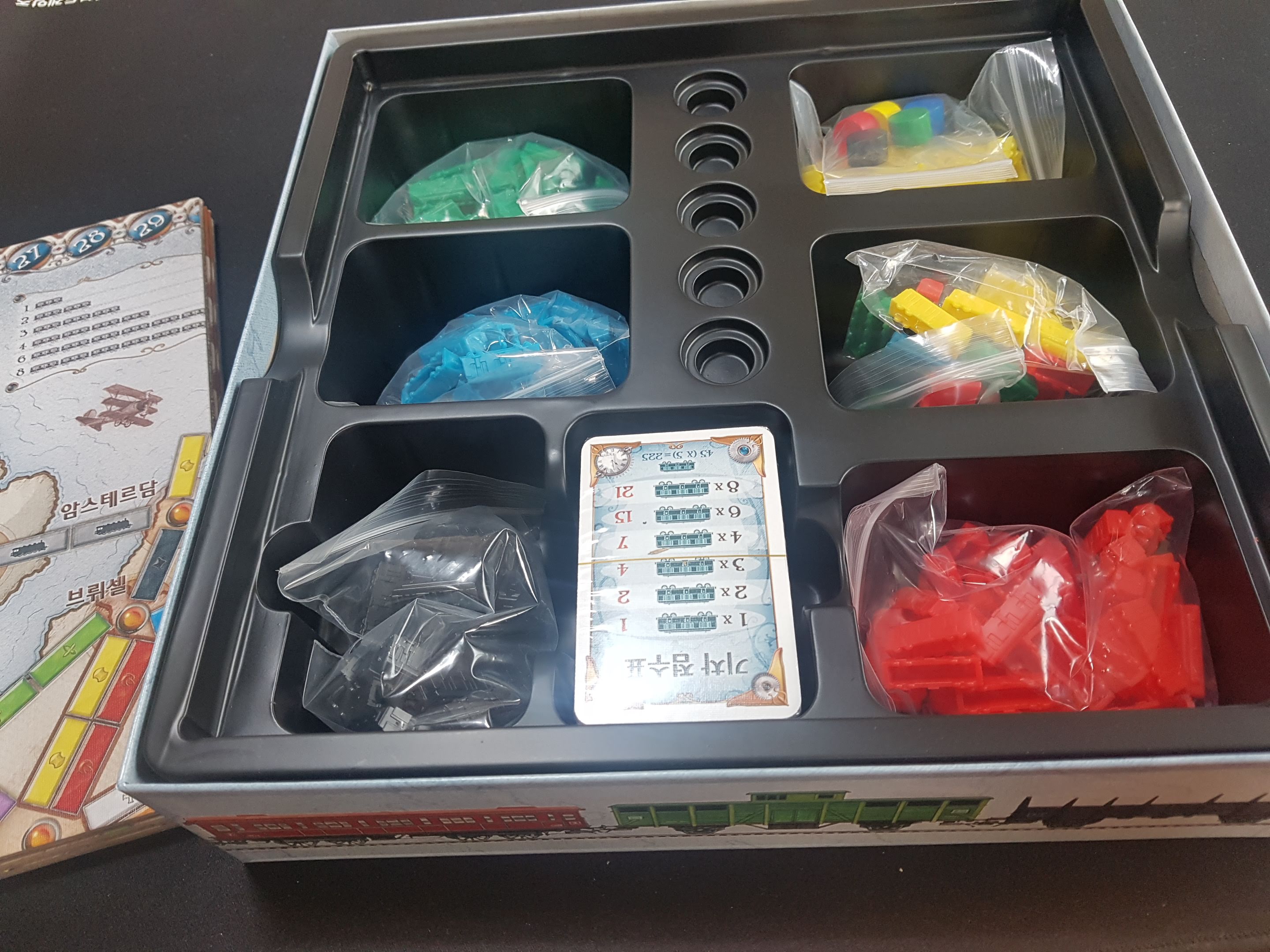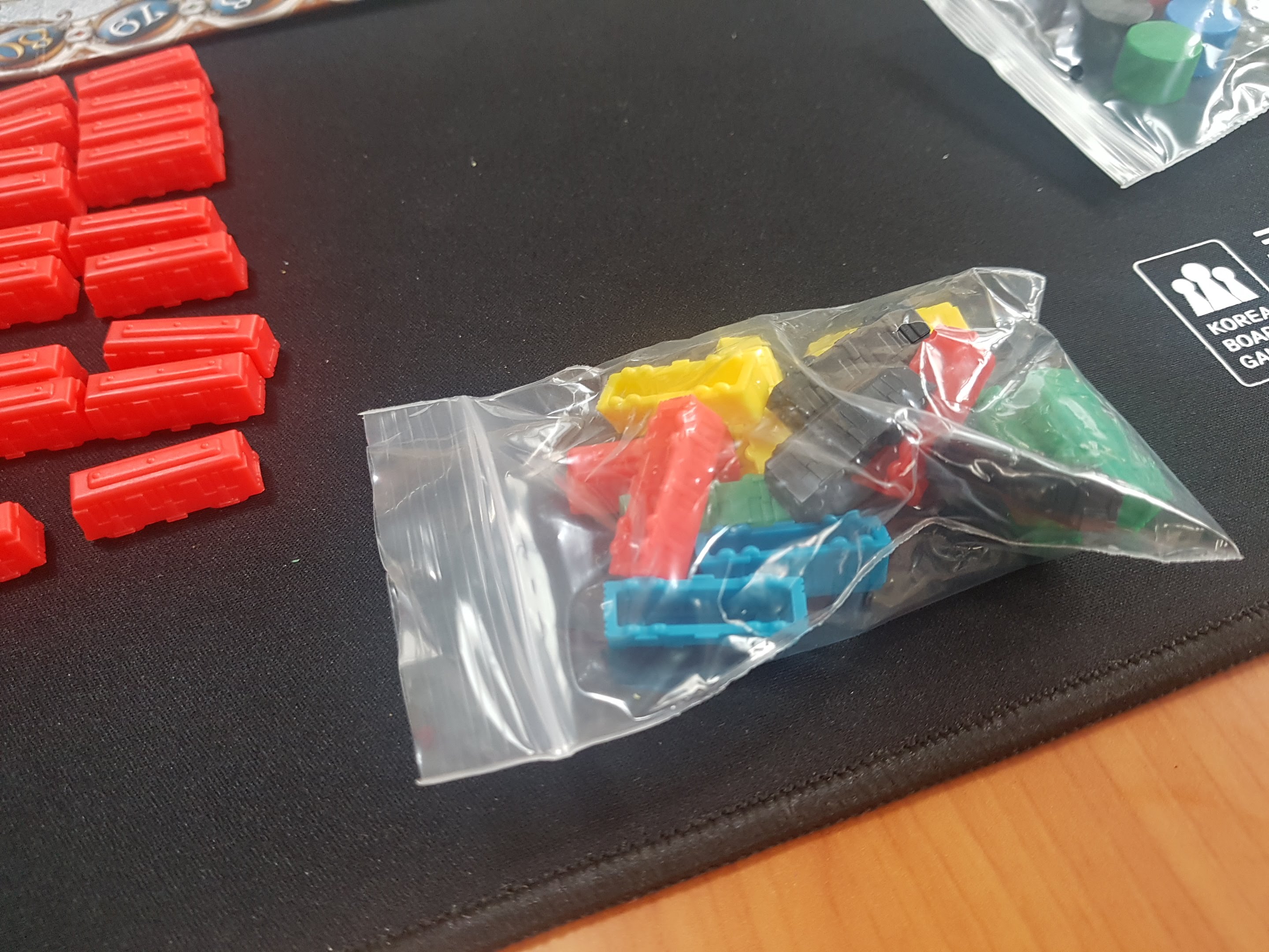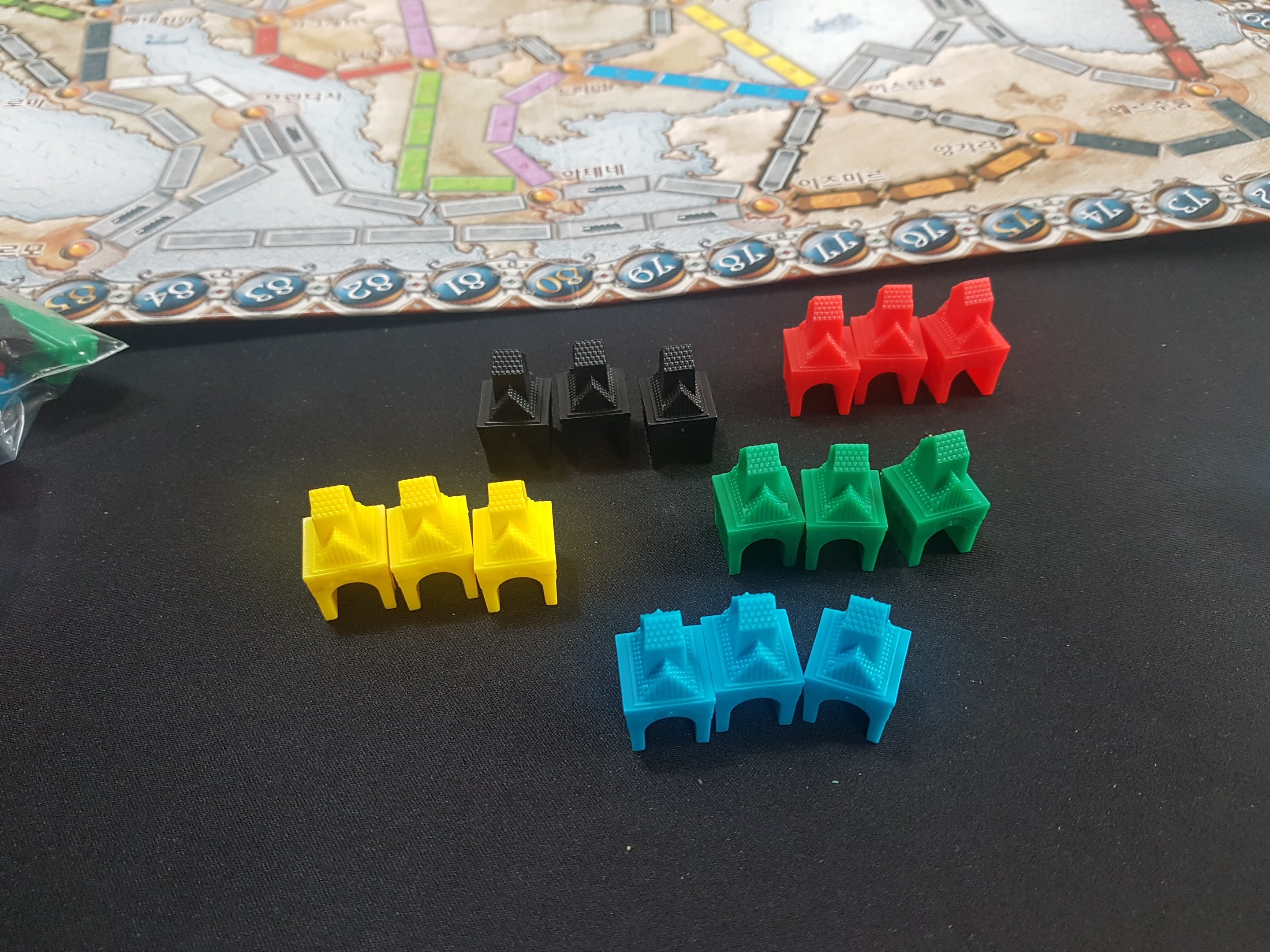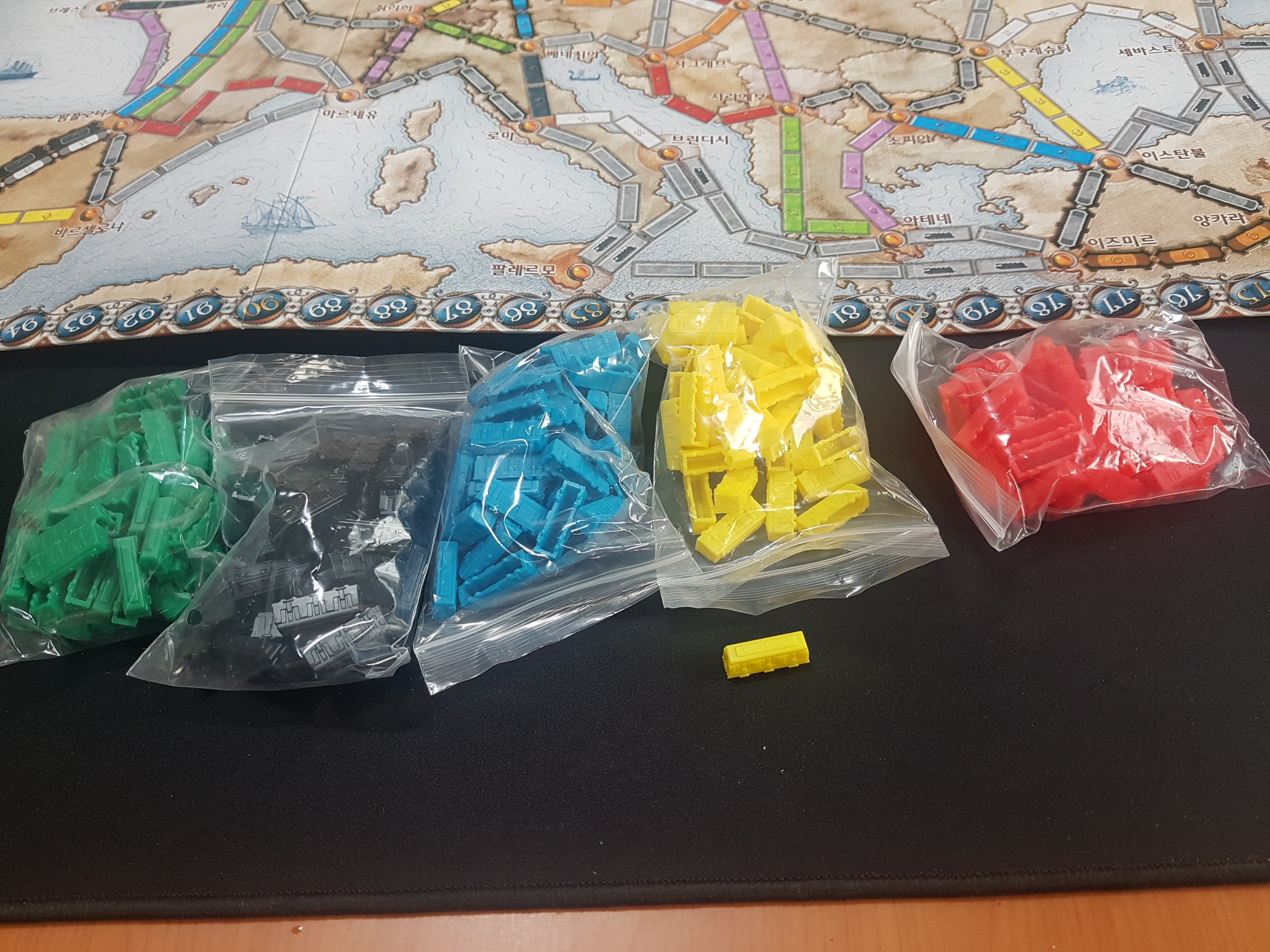 5개 색깔의 기차 토큰들이 있네요