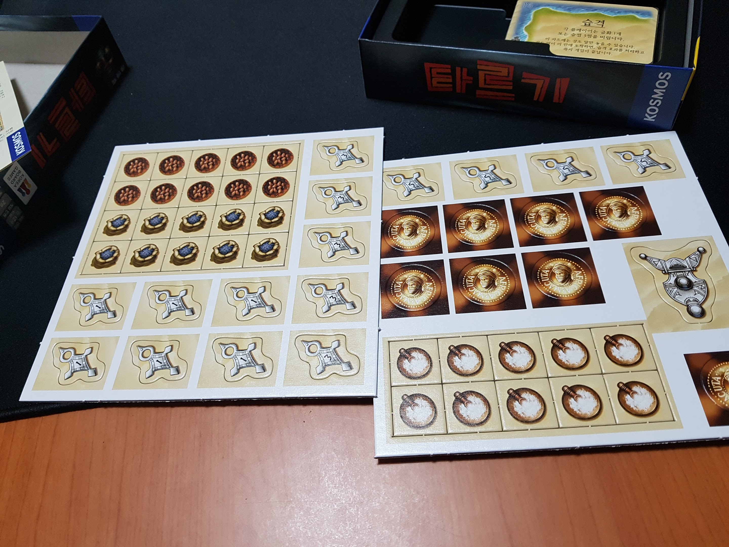 자원과 승점 타일들이에요.