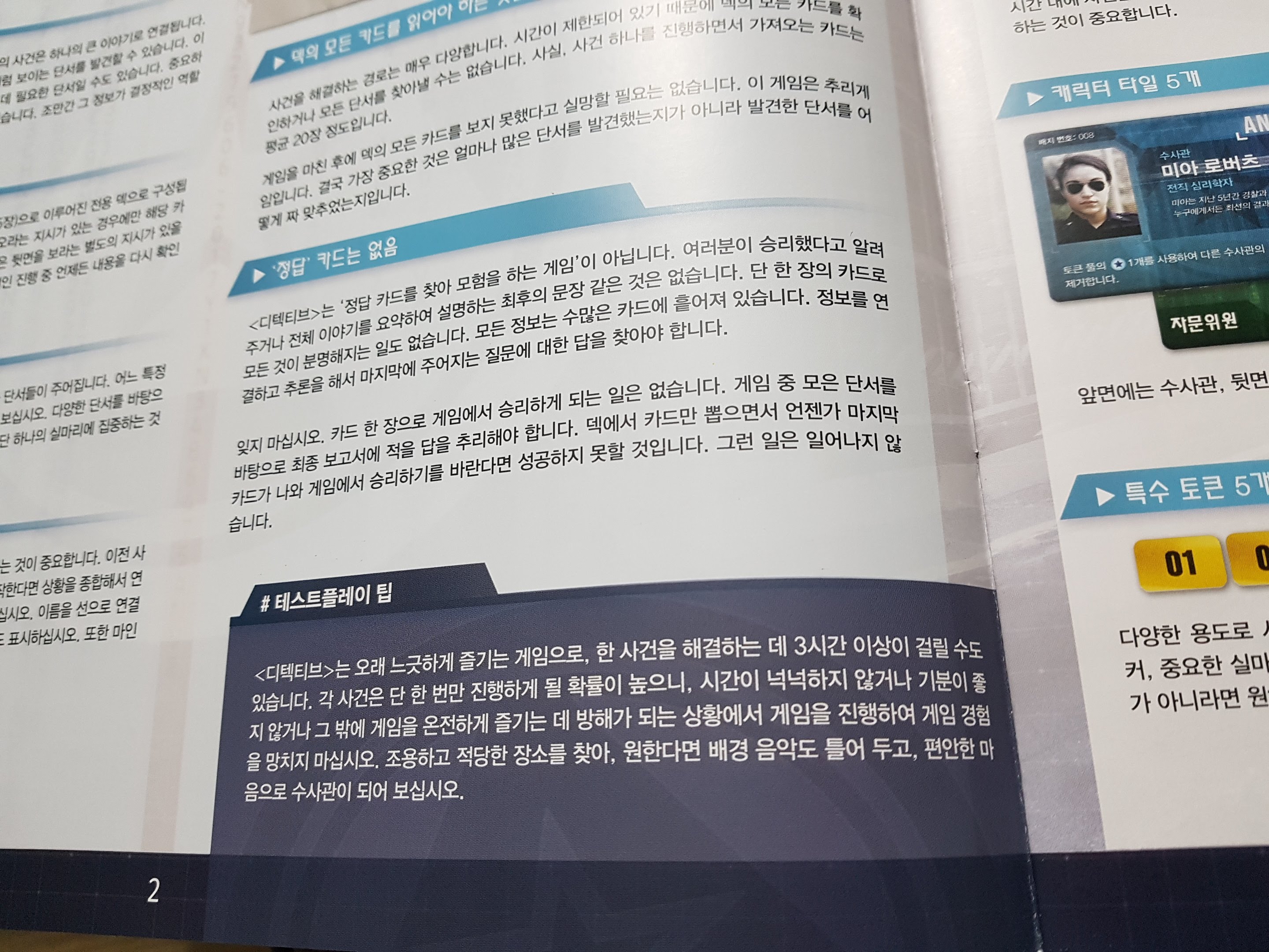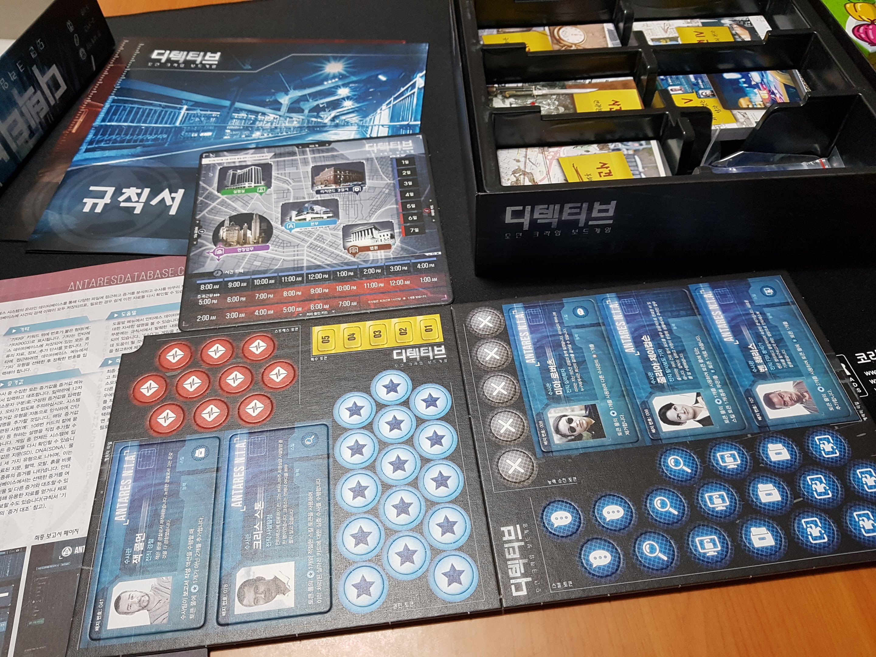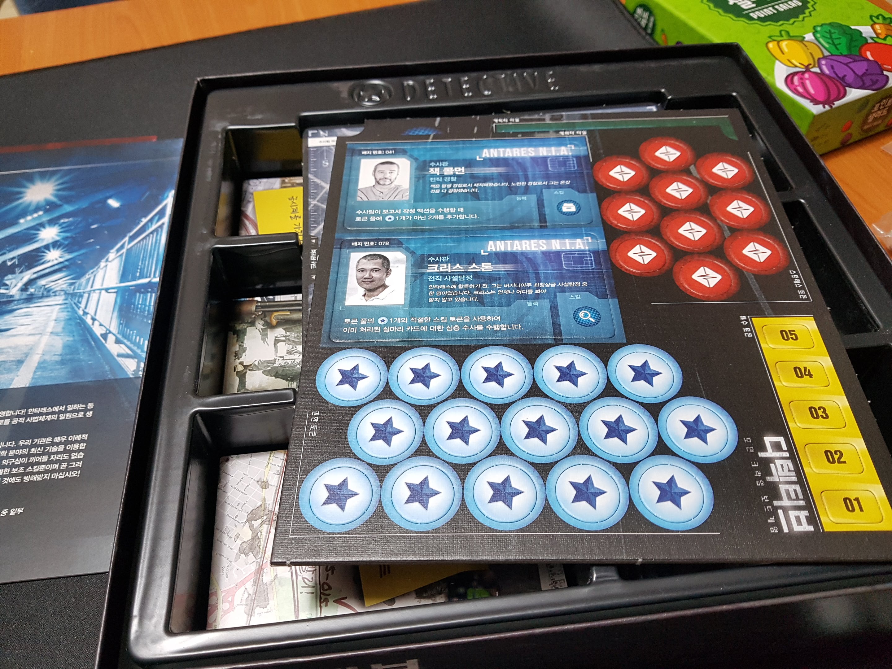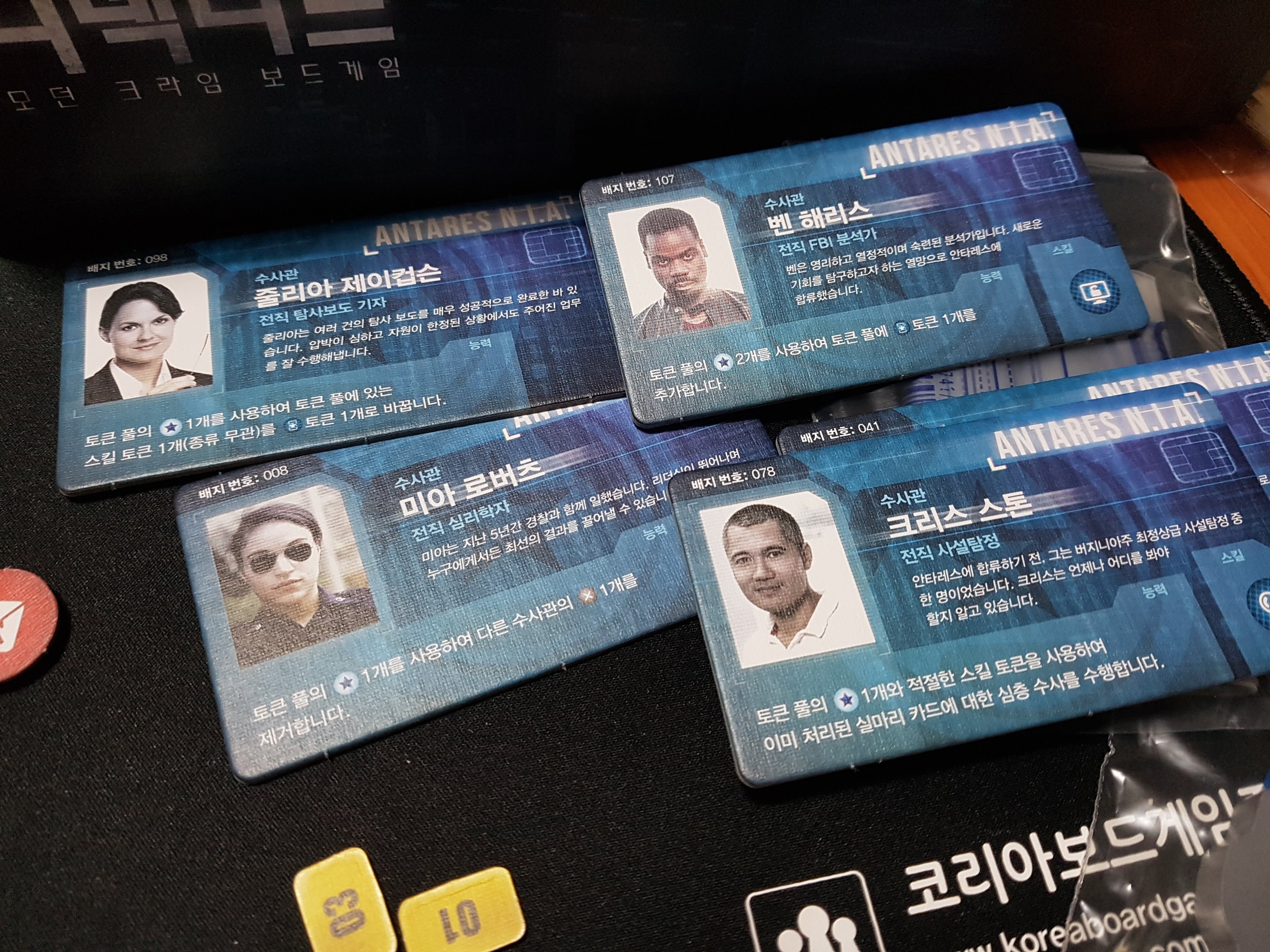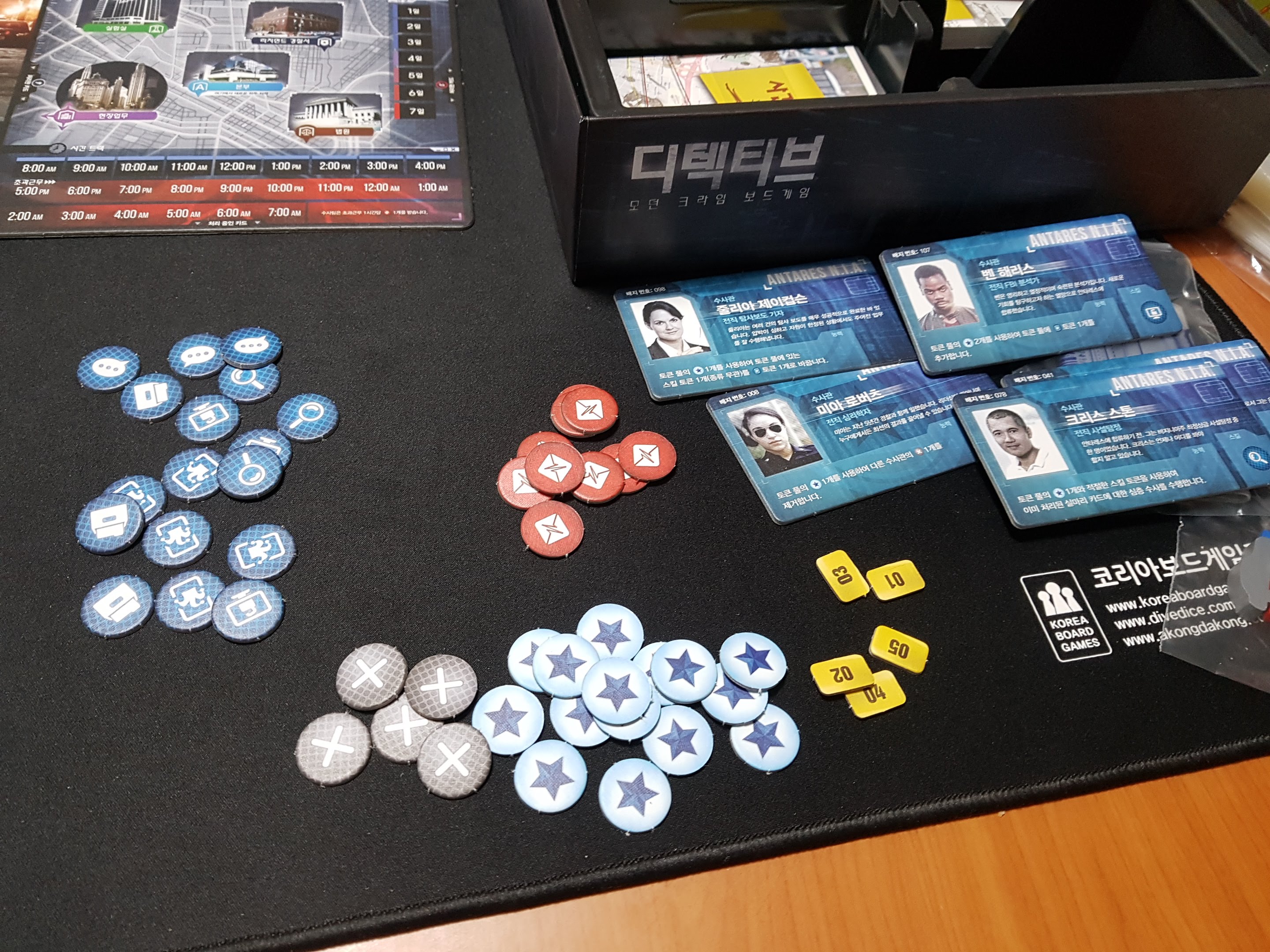 수사관 타일과 토큰들입니다.