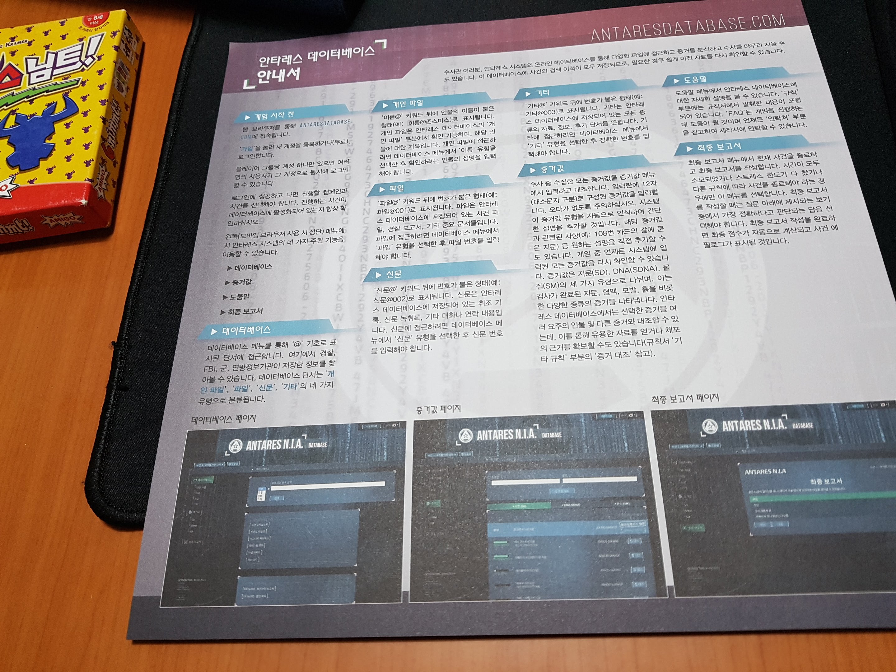 안타레스 데이터베이스라는 인터넷 사이트에 접속해서 검색을 하며 게임을 플레이하게되는데,