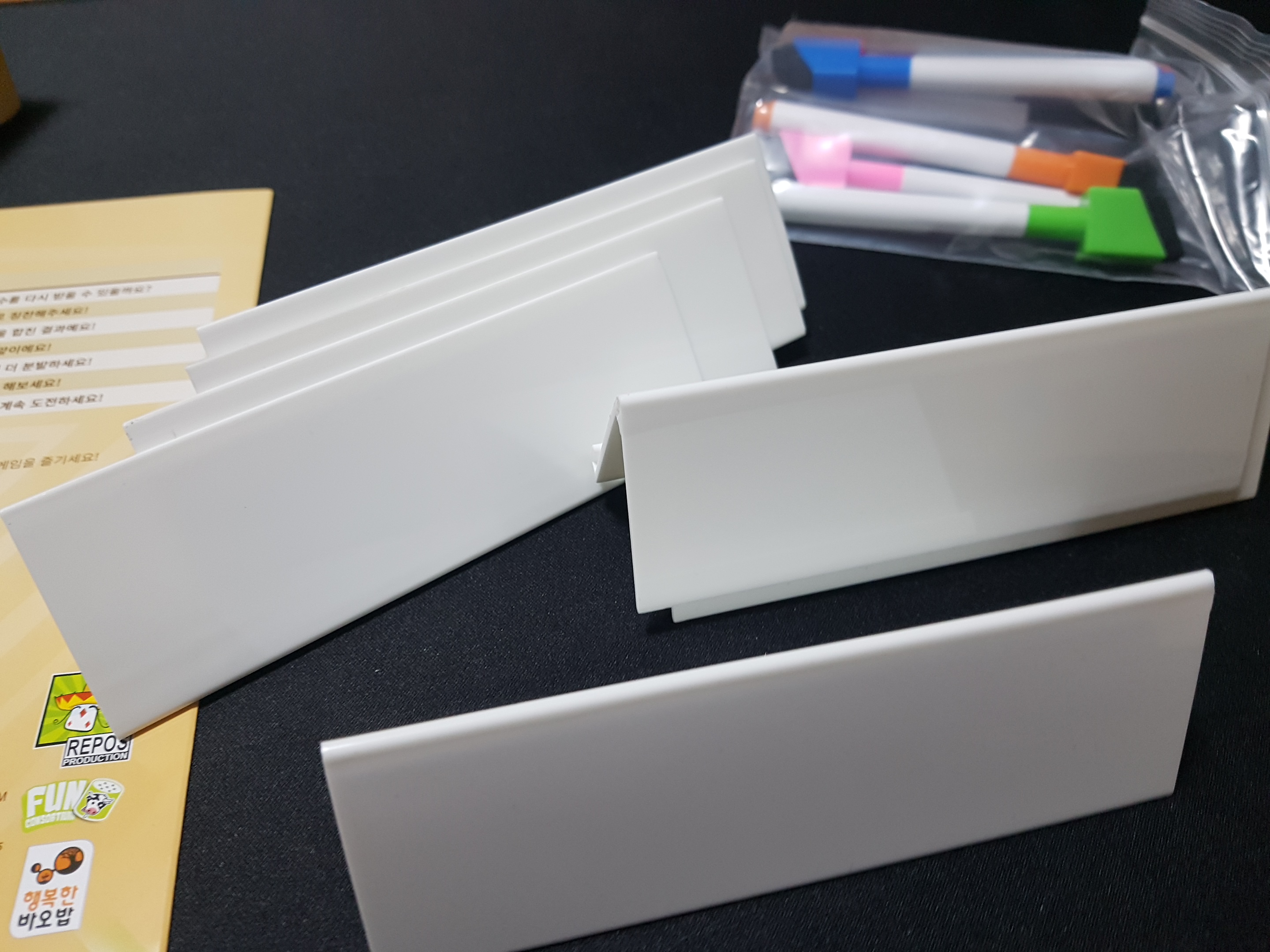 힌트는 이 하얀색 판에다가 적는데 펜으로 쓰고 지워집니다.