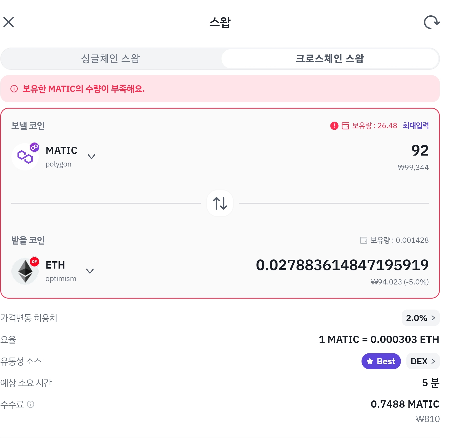 2. Matic -> 부리또 월렛 크로스체인 스왑