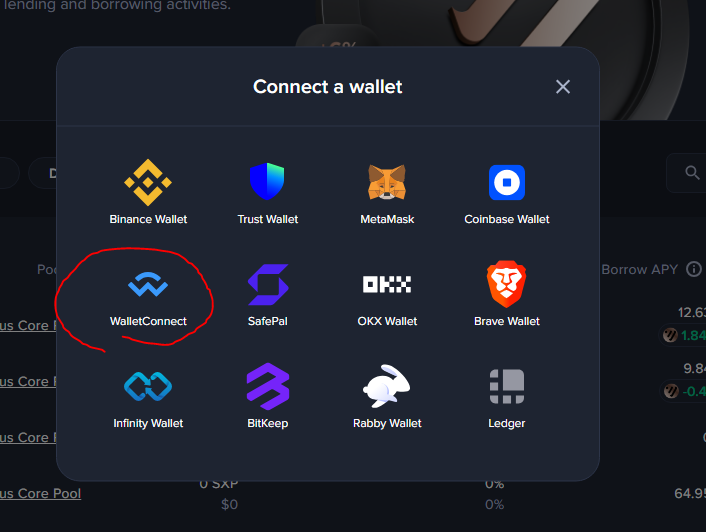 아까와 같이 core pool 메뉴에서 이번에는 USDT를 눌러줍니다.