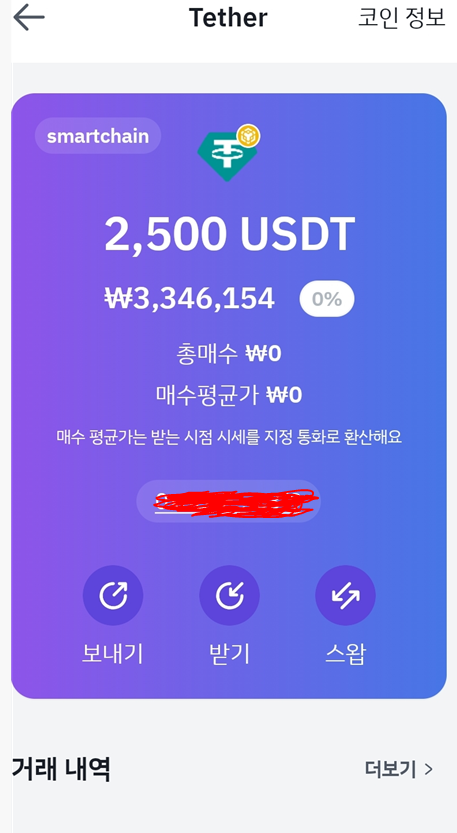 2500 USDT를 대출하였습니다. 지갑에 들어온 모습입니다.
