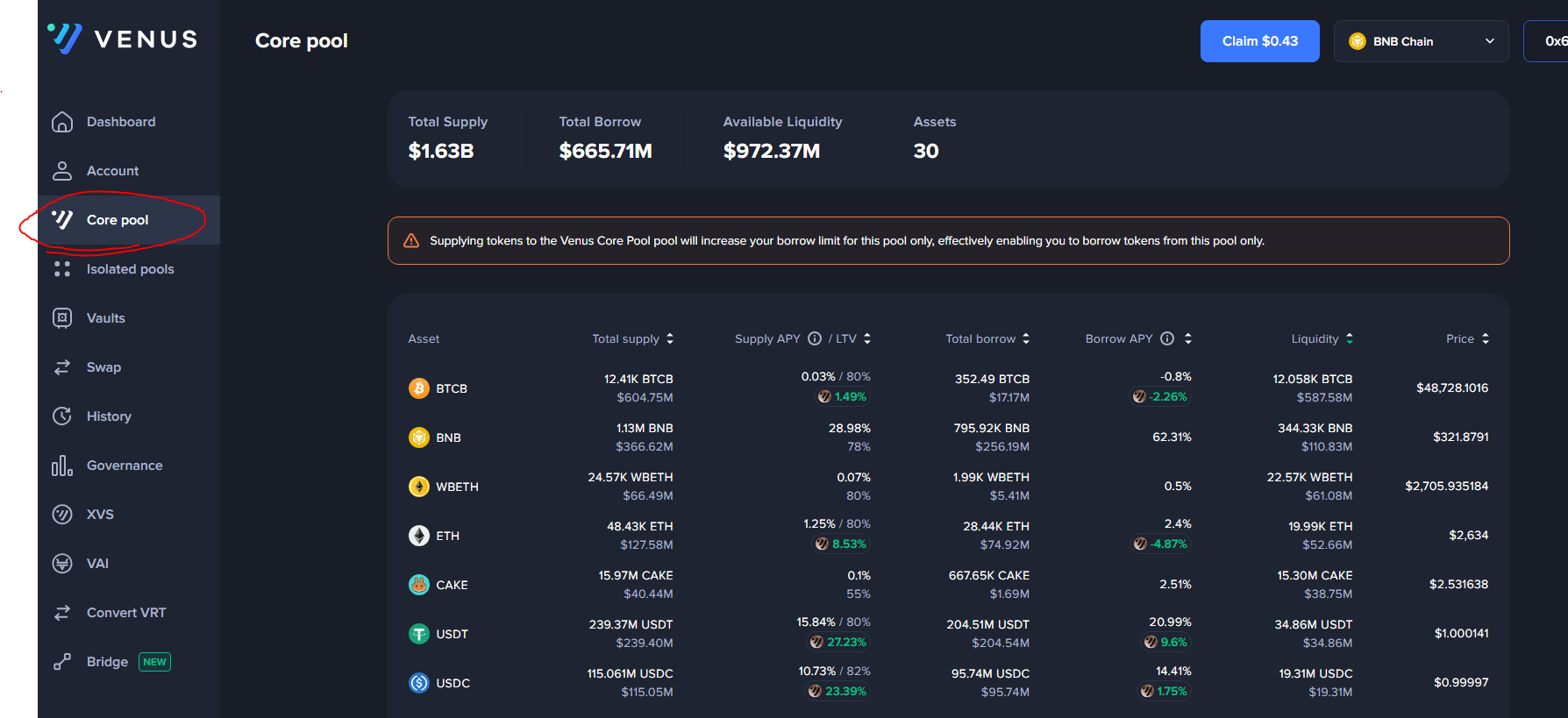 2024.02.13 - [코인 투자] - Venus 프로토콜 사용해보기 -코인 담보 대출로 코인 수익 극대화 하기 - 설명편