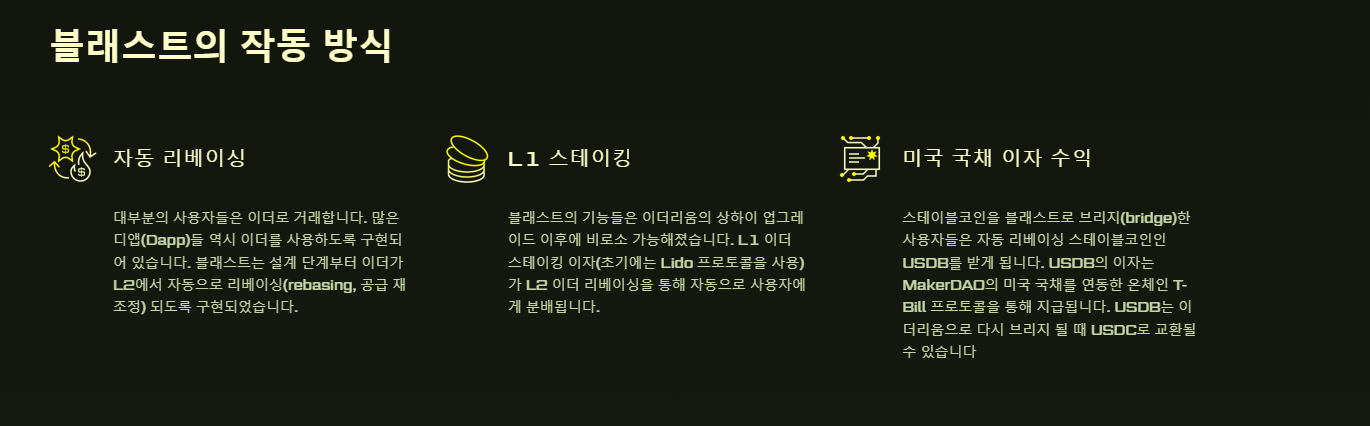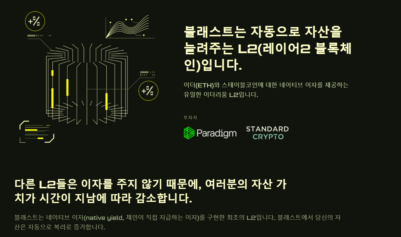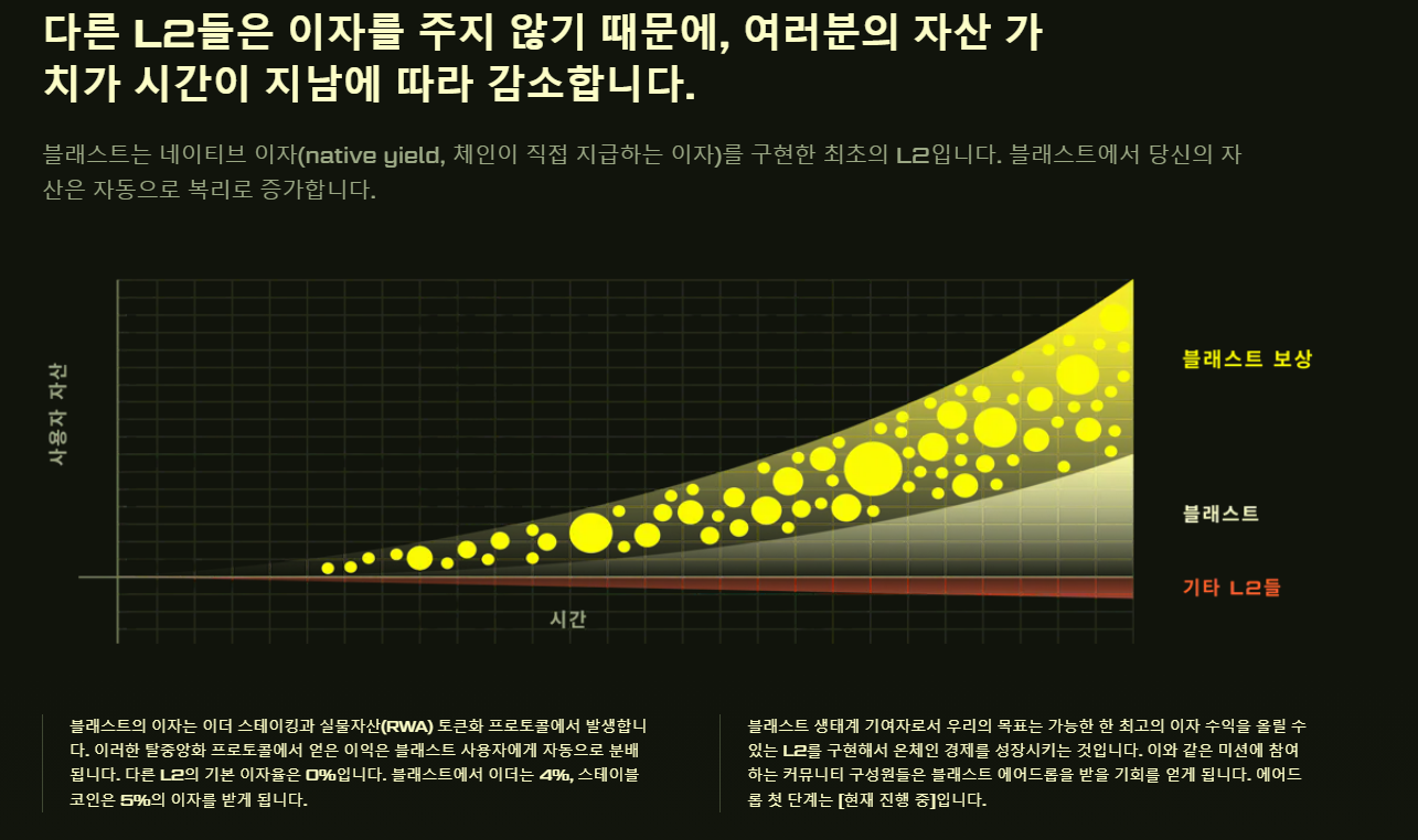 Blast는 자동으로 ETH와 스테이블에 대해 이자를 제공하는 L2 입니다.