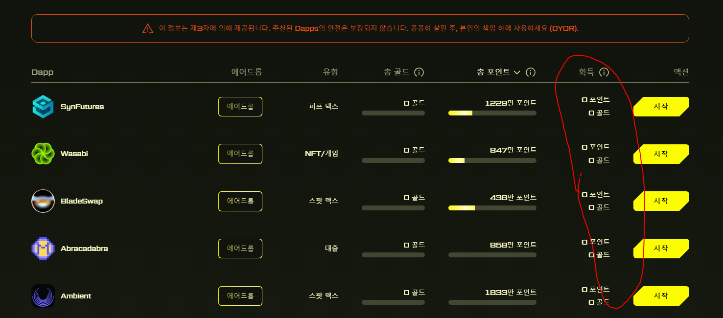 좋은 Dapp을 미리 선별한다면 Blast 골드도 확보하고 Dapp의 자체 에어드랍도 받을 수 있겠죠.
