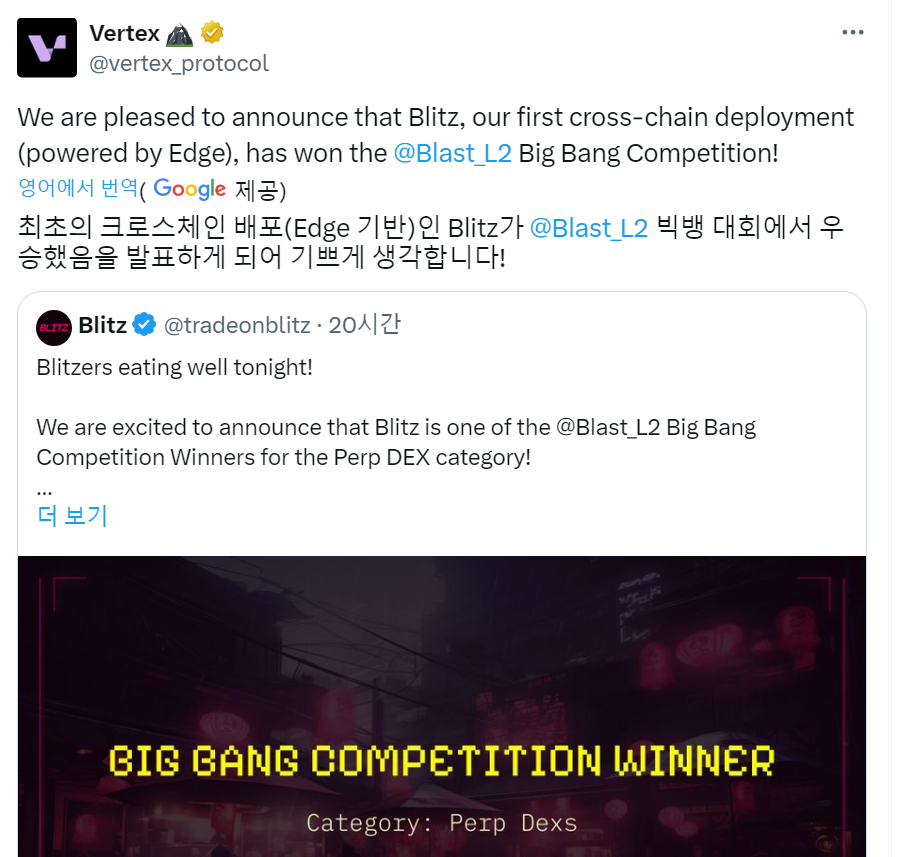 대회 결과 : https://blastpublic.notion.site/Big-Bang-Winners-1f0a437a78794c34a74352b1b1351c86