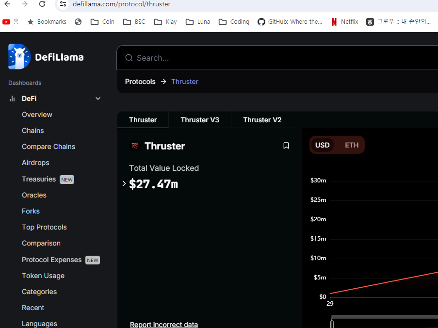 디파이 라마에서 dapp들을 검색해보거나, 해당 dapp들에 들어가면 볼 수 가 있습니다.