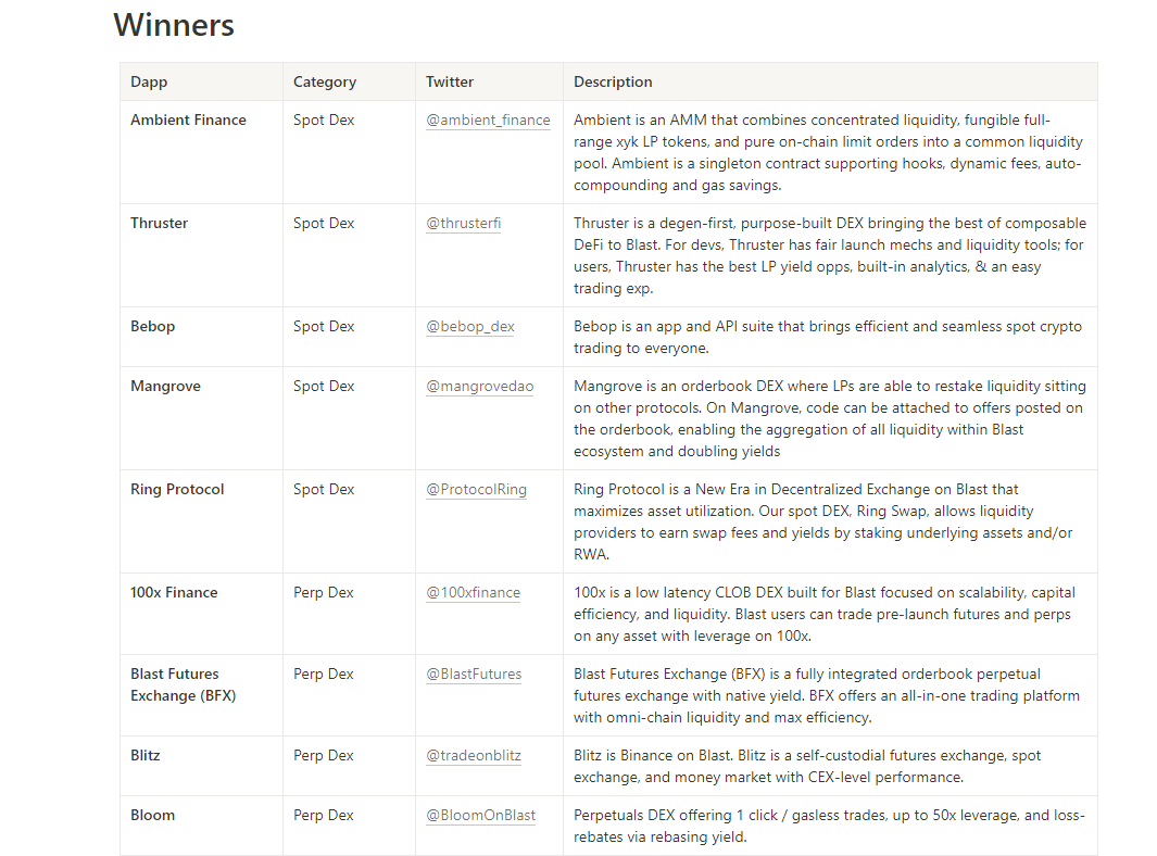 Blast에서는 한달동안 Dapp 경연대회를 열었습니다. 이 대회에서 우승을 했다는 것은, 그만큼 어느 정도 퀄리티를 보장한다는 뜻으로 받아드릴 수 있을 것 같습니다.