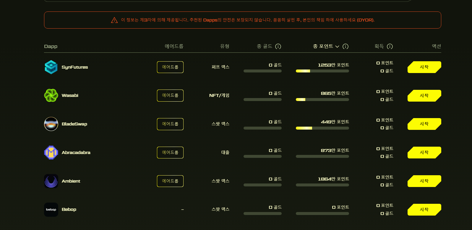 Blast 대시보드에 Dapp들이 나오는데, 이 대시보드 정보를 통해 판단하는 방법입니다.