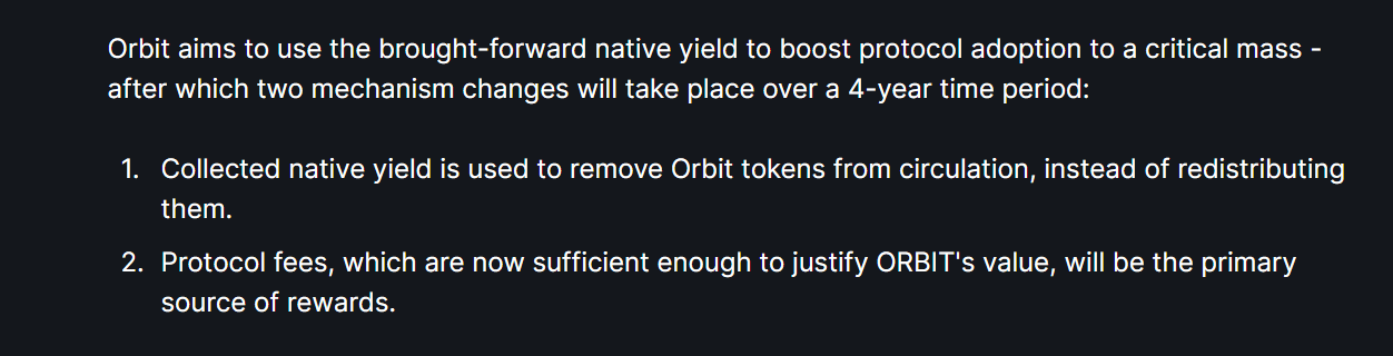 1. TVL로 벌어들이는 이자 수익(Native yield)으로 Orbit 토큰의 가치를 부양한다. (소각 등의 방법으로)