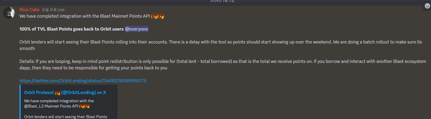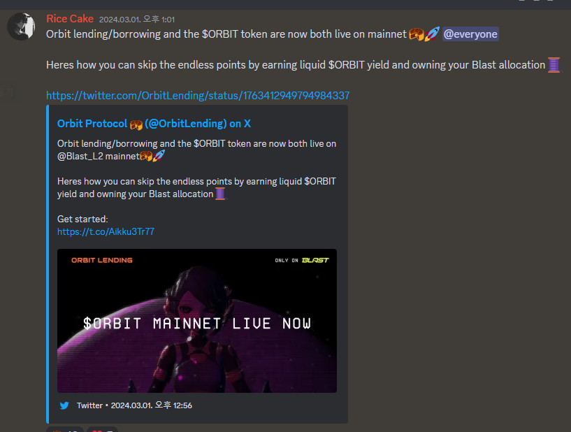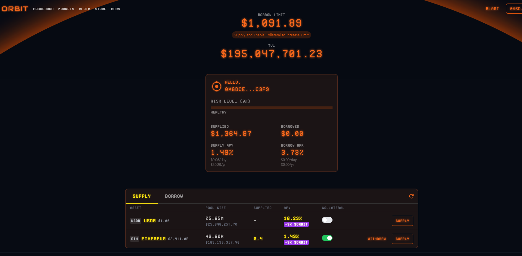 이 번 글에서는 Blast dapp들 중 Orbit Lending에 대해 알아보겠습니다.