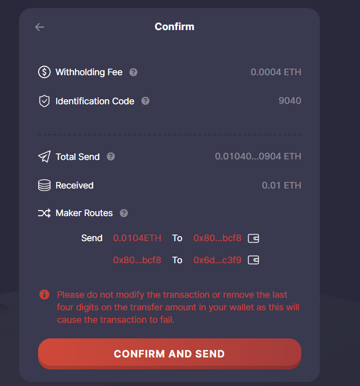 전송 내역을 확인하고, Confirm And Send를 누르면 전송이 시작됩니다.