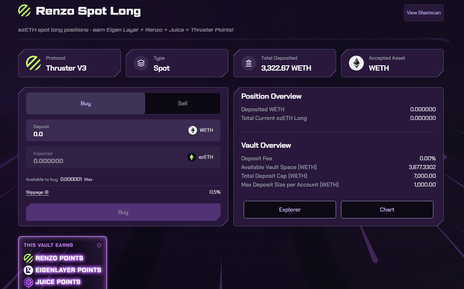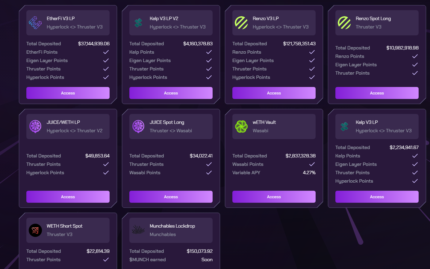 Ether fi , Eigen layer, hyperlock, Thruster, Juice 포인트를 한 번에 얻을 수 있습니다.